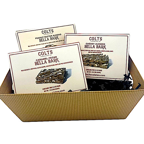 Try a selection of our Bella Barks in our new 7oz bars! Enjoy artisan chocolate bark with crispy rice cereal and various flavor components mixed in for an unforgettable bite.